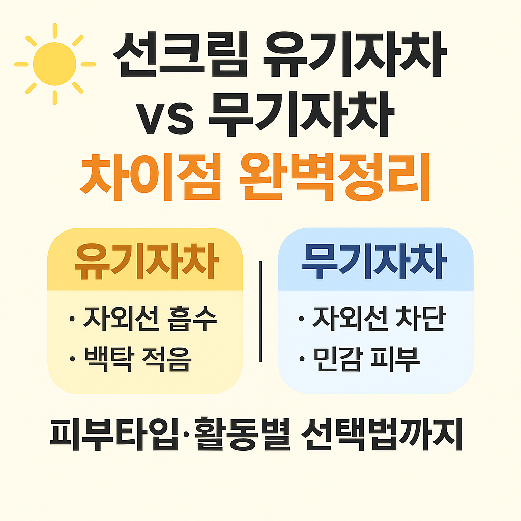 많은 분들이 "선크림 유기자차 무기자차 차이"에 대해 혼란을 겪습니다. 자외선 차단 성분이 다르고, 피부에 미치는 영향도 다른 만큼 정확한 구분법과 자신에게 맞는 제품 선택법이 중요합니다.
