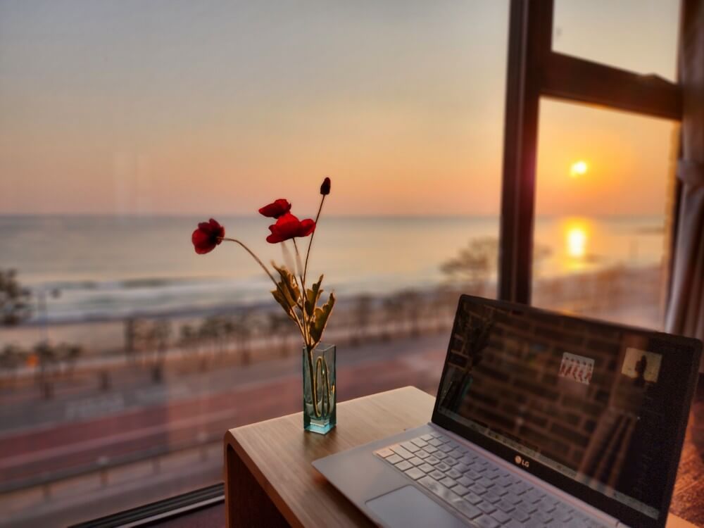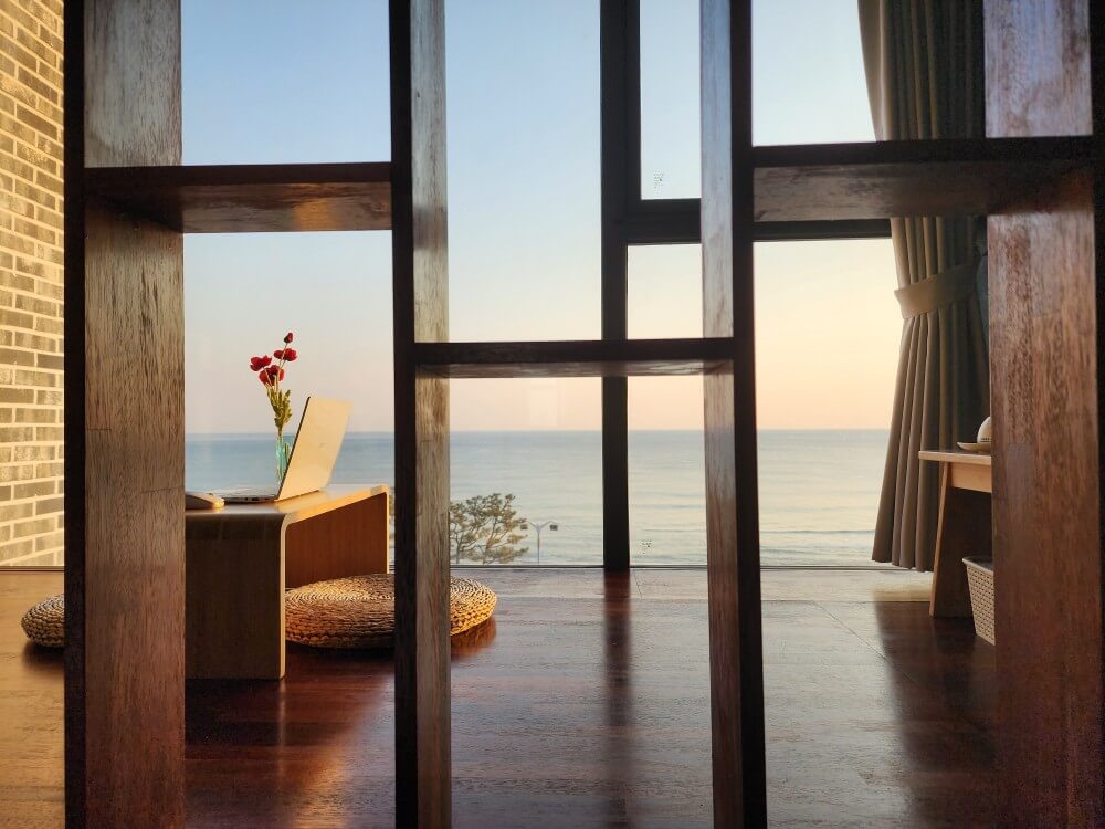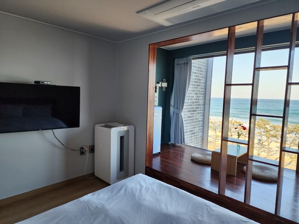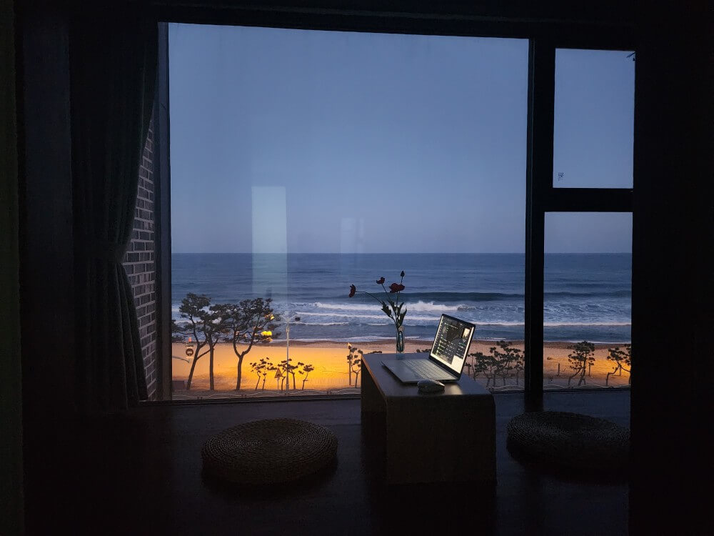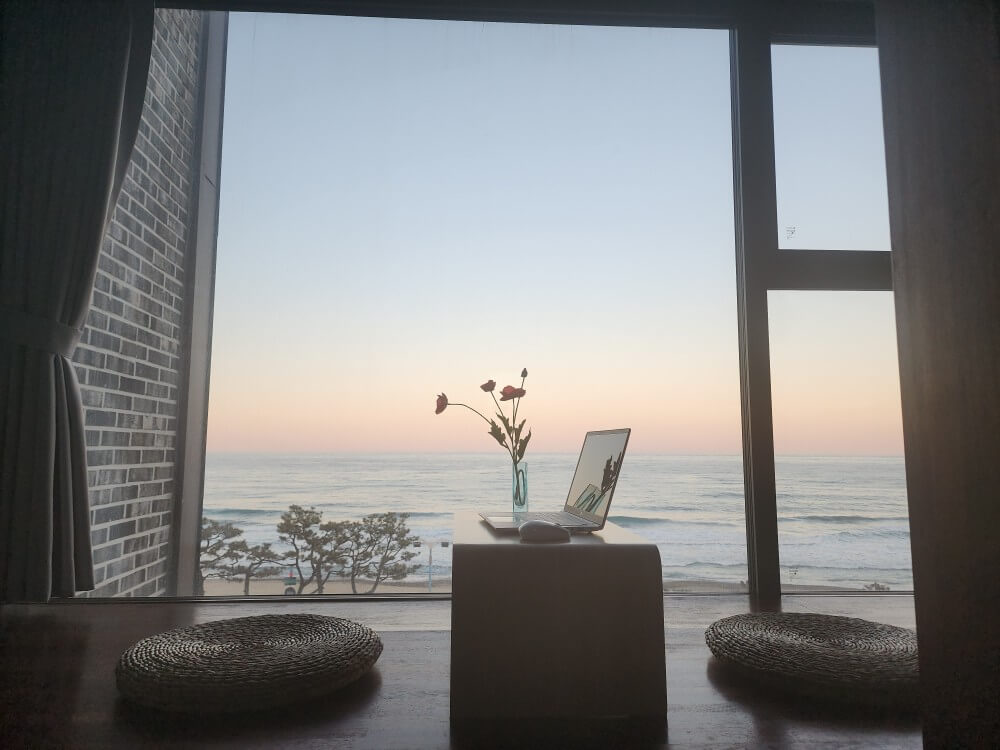 개인적으로 노트북을 가져가서 음악을 들으며 몇 시간 동안 창밖을 바라보았습니다. 바로 앞에 정암해변이 있어서 가볍게 산책하기에도 좋은 위치였습니다. 해가지고 어두워질 때까지 설레는 기분을 충분히 만끽하며 즐겼답니다. 휴식이란 이런 것..