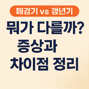 갱년기는 폐경 전후의 전환기, 폐경은 그 전환이 끝났음을 알리는 시점입니다. 혼동하기 쉬운 개념이지만, 각 시기의 증상과 건강 리스크는 분명히 다릅니다. 자신의 몸 상태를 정확히 인식하고, 그에 맞는 생활습관과 식이조절로 건강한 중년기를 준비해보세요.