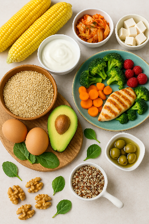 • ✅ 단백질: 생선, 계란, 닭가슴살, 두부