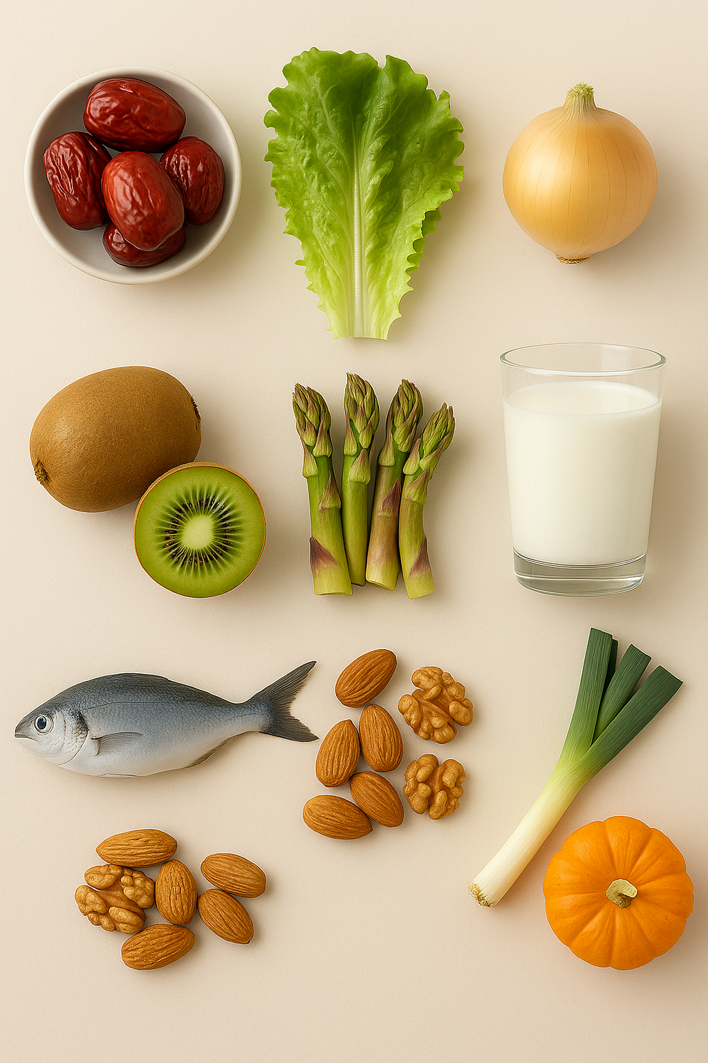 - 아몬드와 호두: 마그네슘과 멜라토닌이 풍부하여 수면을 돕고, 신경 안정에 효과적입니다.