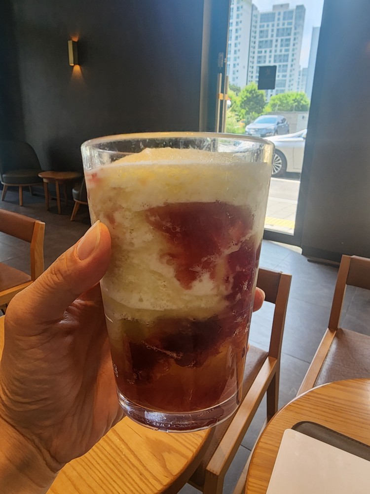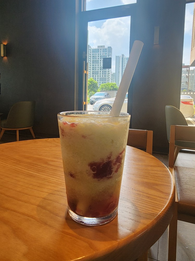 더운 여름날에 가볍게 샤벳트 식감의 청량감 있는 음료를 마시니 갈증해소에도 좋았고 온몸이 시원해지는 느낌이 들었어요.