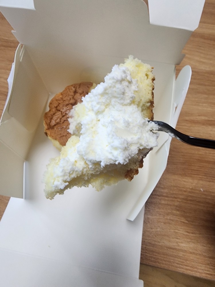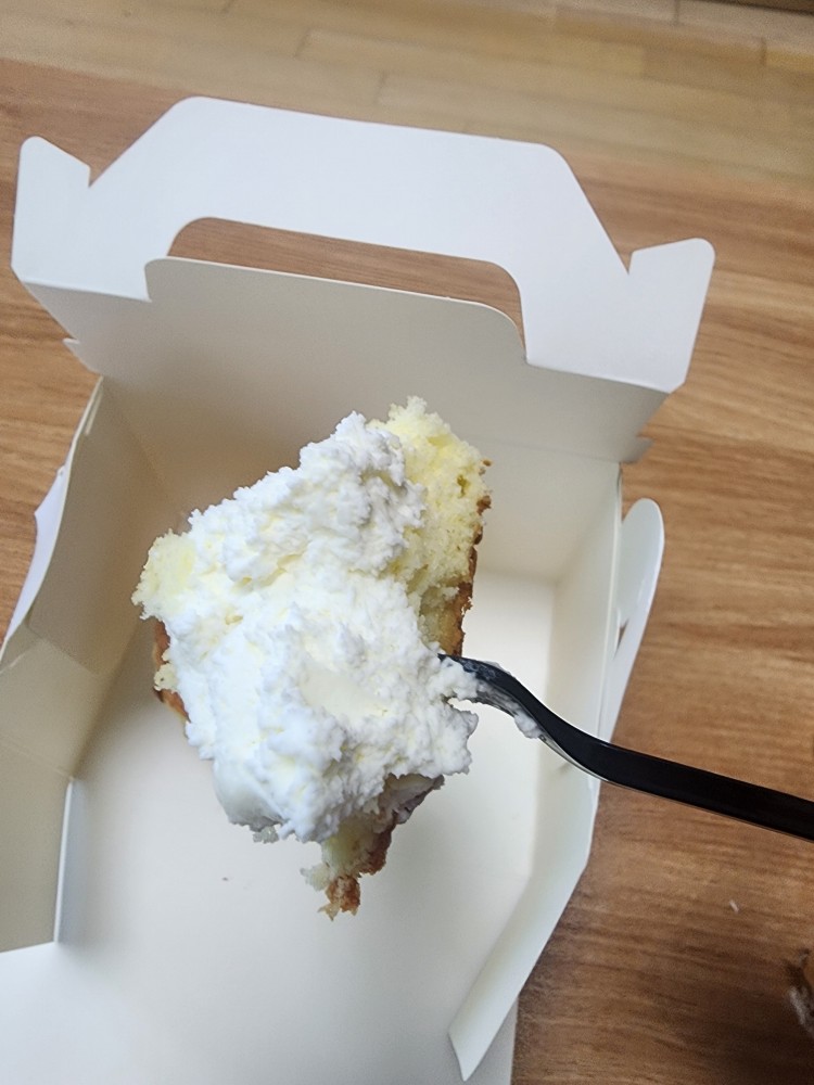 입안에서 사르르 녹습니다. 중간에 들어있는 생크림은 지나치게 달지 않고, 깔끔하면서도 진한 우유 맛이 느껴집니다. 퍽퍽하지 않고 끝까지 촉촉함이 유지돼요. 커피와 함께 먹으면 조합이 정말 환상입니다. 특히 아이스 아메리카노와의 궁합은 100점!