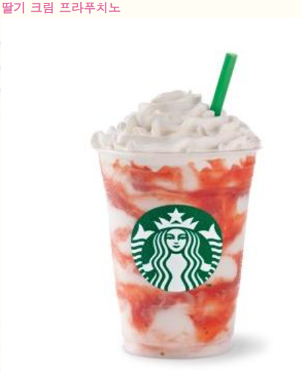 - 스타벅스의 '딸기 크림 프라푸치노'는 딸기 퓌레와 우유, 얼음을 블렌딩한 후 바닐라 휘핑크림으로 마무리한 음료로, 여름철 인기 메뉴 중 하나입니다 .
