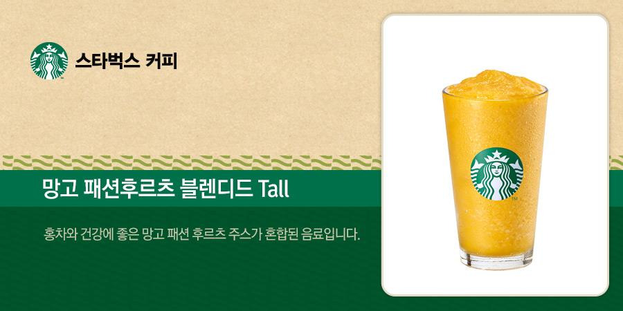 - 달콤한 망고와 상큼한 패션 프루트가 어우러진 블렌디드 음료로, 과일의 풍미를 그대로 느낄 수 있습니다.