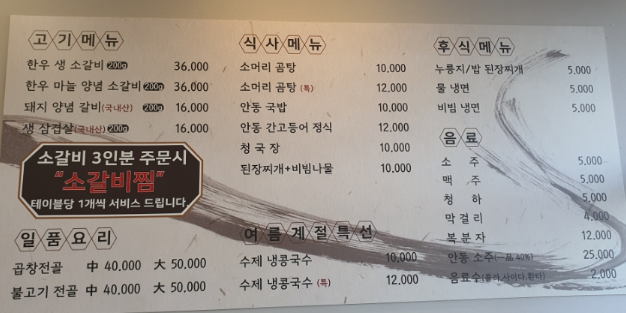 - "신가안동숯불갈비의 반찬이 조금 짜게 느껴졌습니다."